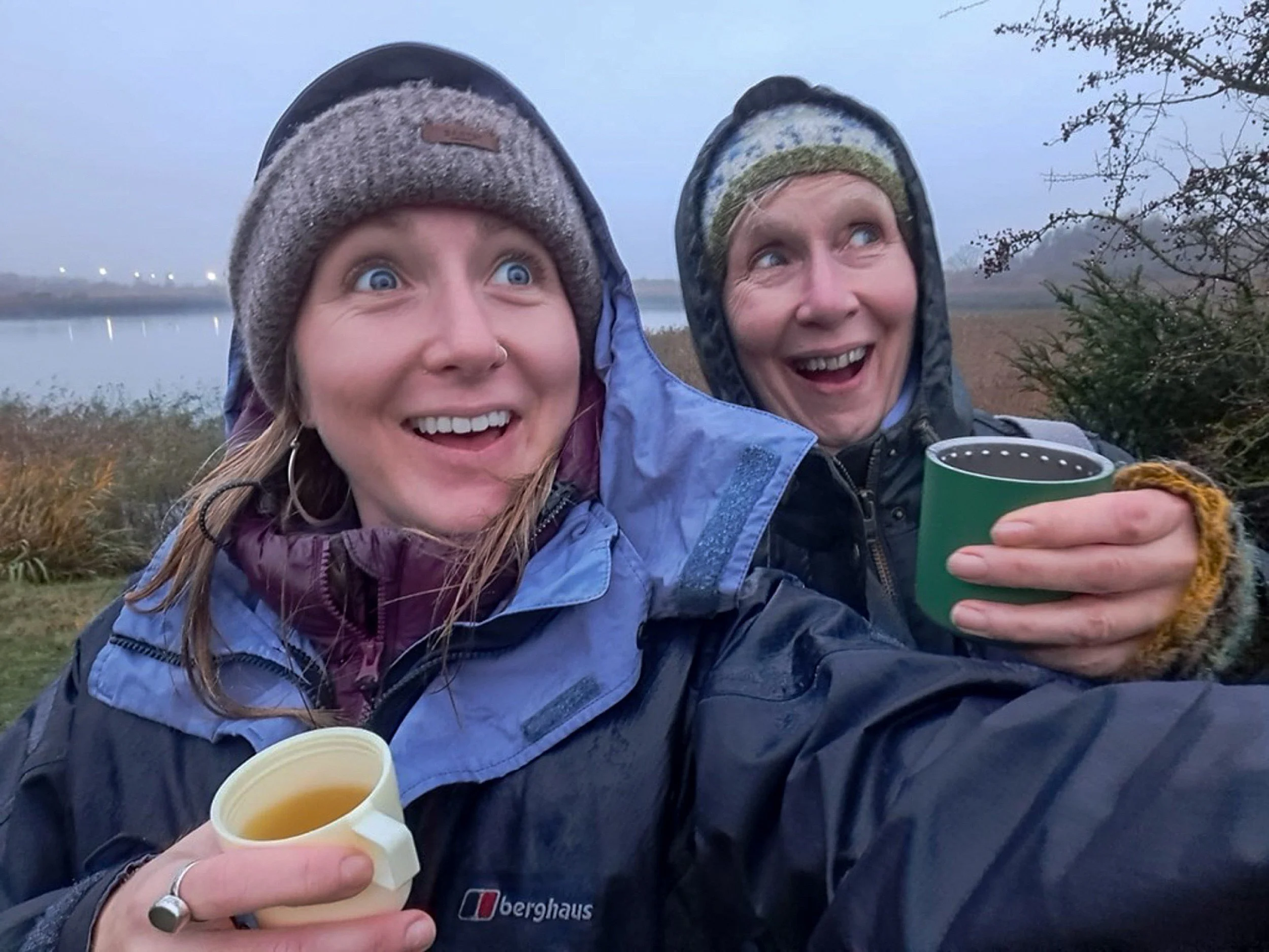 We got to Netherfield Lagoons and did not have long to wait until the starlings started to come in to roost. They just kept coming in by the thousands, we were drinking our tea and Ellen decided to take a few selfies. She captured us looking in the same direction at the starlings with the same expression “we were totally in awe” as you can see. It’s not an award-winning photograph, but it is a great memory of special times with Ellen, which I thought I would share with you all.